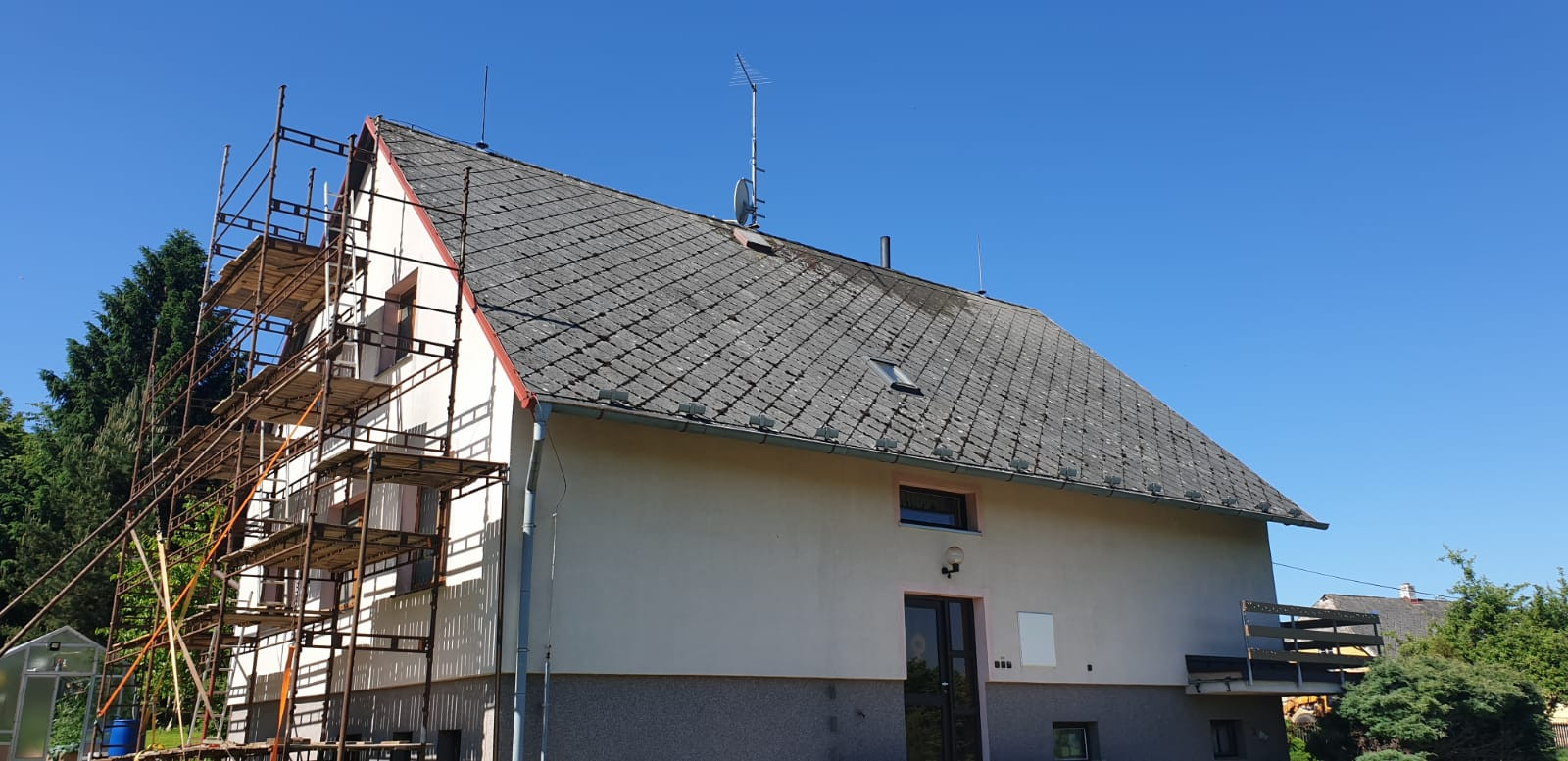 Pečujte o krásu a dlouhou životnost své střechy náležitým způsobem! A pokud na to nemáte síly, čas, to správné vybavení nebo se vám motá hlava už i na prvním stupínku žebříku, jsme tu pro vás my. Majitelé rodinného domu v obci Prapořiště využili naší služby čištění střech. Bohaté zkušenosti máme i s nátěry střech a tak jsme se na žádost klienta postarali také o nový, ochranný nátěr v krásném červeném odstínu. Porovnat a prohlédnout si stav střechy před naším zásahem a po ošetření si můžete v naší bohaté fotogalerii.